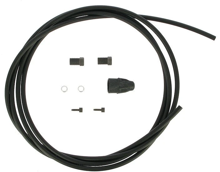 Das Bremsleitungsset von Avid besteht aus einer Hydraulik-Bremsleitung samt Anschlussmaterial und besitzt eine Länge von 2000 mm. Die Leitung ist mit verschiedenfarbigen Überzügen erhältlich und reicht zur Verwendung an einer Bremse (Vorder- oder Hinterrad).