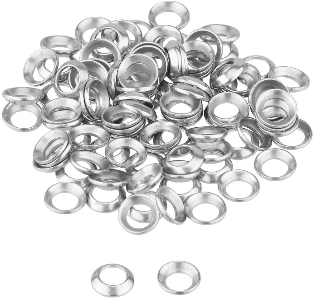 Konische Unterlegscheiben von Sapim für ungeöste Doppelwandfelgen. Durch die vergrößerte Auflagefläche wird die Reibung zwischen Speichennippel und Felgenloch vergrößert und die auftretenden Kräfte werden besser verteilt.